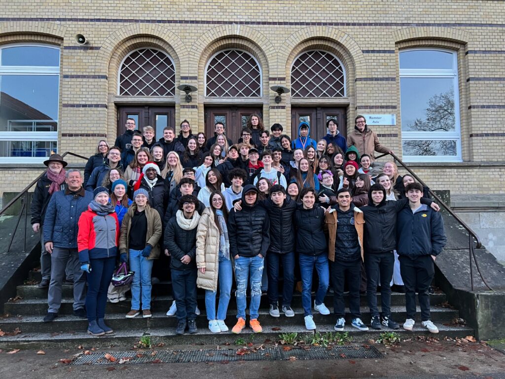Am nächsten Morgen erhielten die Inbounds nach dem Frühstück alle Informationen zur heiß ersehnten Deutschlandtour. Danach hieß es warm anziehen, da in Kleingruppen eine Stadtralley quer durch Wolfenbüttel absolviert werden musste. Die Austauschschüler:innen quetschten sich vor das schmalste Haus der Stadt, machten viele Fotos und durften ihre Deutschkenntnisse auch praktisch verwenden, wenn Passant:innen gefragt werden mussten. Natürlich gab es für das Gewinner-Team einen großen Preis. Nach einigen Stunden Freizeit trafen sich alle wieder auf dem Weihnachtsmarkt, wo auch einige Rotarier:innen der Clubs Salzgitter-Wolfenbüttel und Salzgitter-Wolfenbüttel-Vorharz dazu stießen. Nach einem Gruppenfoto und einer Runde unseres heißgeliebten Ponygames an der Großen Schule wurde allen ein Becher Kinderpunsch spendiert.